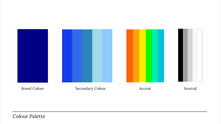 A refreshed colour palette was introduced, carefully selected to evoke professionalism, creativity, and approachability. The palette is divided into: