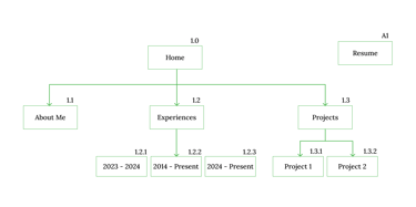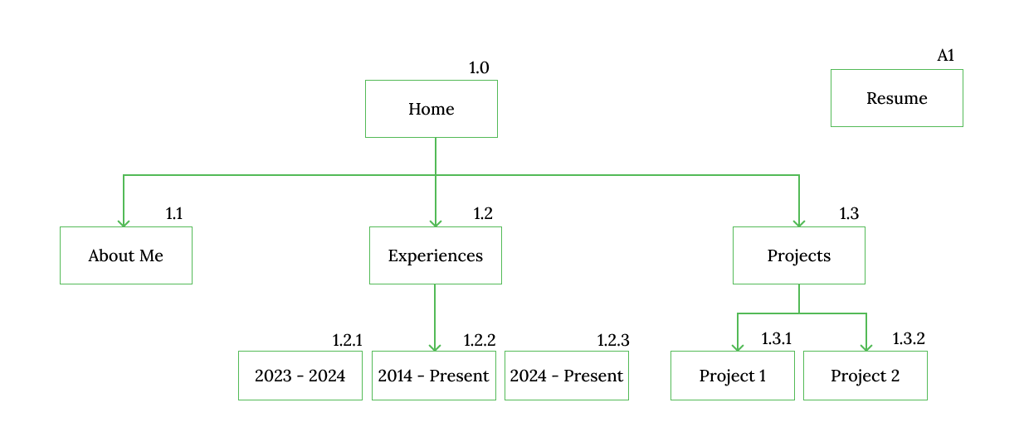 To keep the portfolio easy to navigate, I started with a simple sitemap to define the overall structure of the website. The goal was to help visitors quickly understand where to find key information without unnecessary complexity.