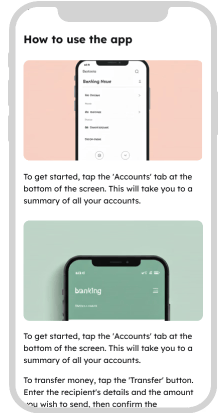 Gentle George finds banking apps overwhelming. Cluttered icons and frequent UI changes leave him confused, and each update shakes his confidence. How might we help George successfully transfer money — with support from Clara? Let’s explore his user journey in our tool, CareConnect, below.